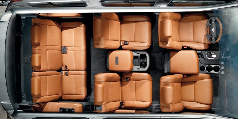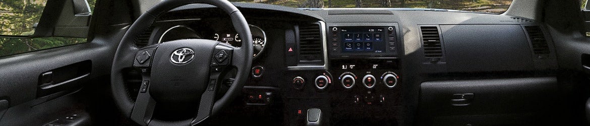 Climb the Sequoia trim lineup for increasing luxury. The SR5 offers a range of style and comfort options, including leather upholstery and heated front seats. Inside the TRD models, you'll find uniquely exclusive sport-themed trim. The upscale Limited cabin is home to rear window sunshades, and the Limited also offers an optional rear-seat entertainment system with a Blu-ray player to keep young passengers content on long trips. For premium audio, a 14-speaker JBL sound system is also available. The Platinum trim boasts top-level comfort and convenience like ventilated front seats, heated second-row captain's chairs, and a second-row center console. The power-adjustable steering wheel makes it easy to find the perfect driving position.