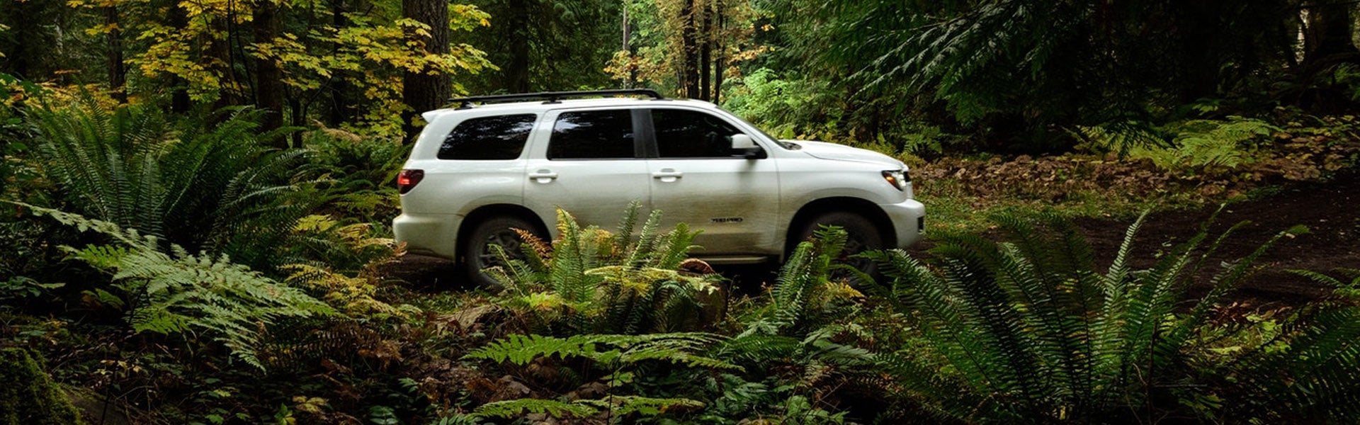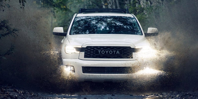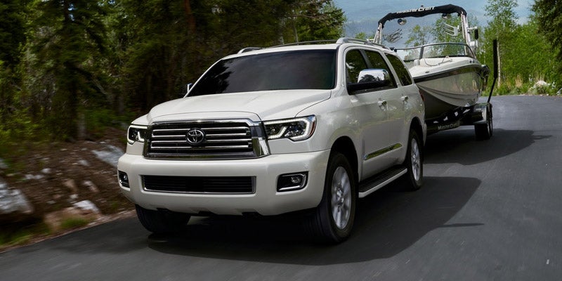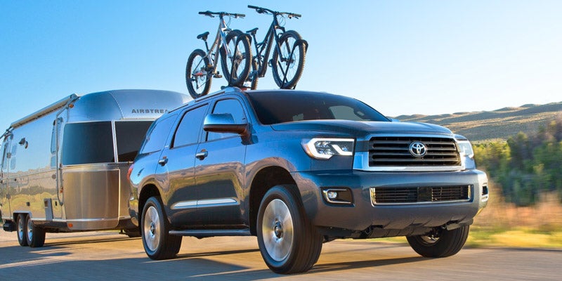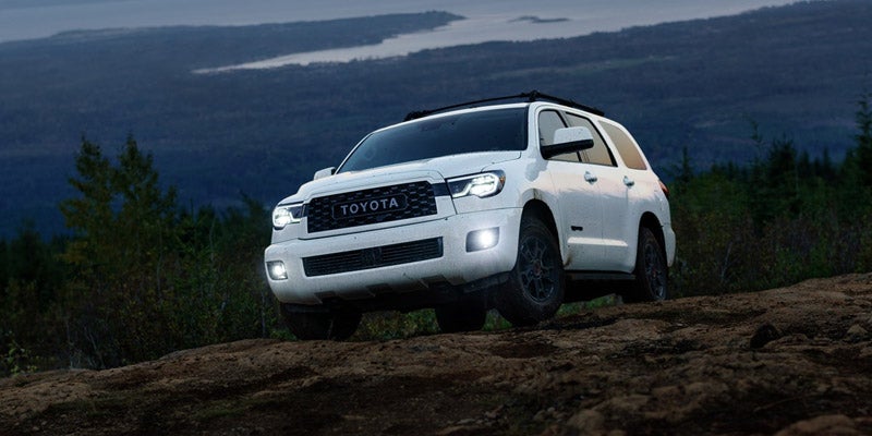 With its standard V-8 powertrain, the Toyota Sequoia delivers a hearty SUV performance in any setting. Depending on configuration and equipment, the Sequoia can tow between 7,000 and 7,400 pounds. For an especially sporty ride, check out the TRD Sport trim, which improves handling with sport-tuned Bilstein dampers and stiffer front and rear anti-roll bars. The TRD Pro adds to your off-road experience with skid plates and Fox shocks.
