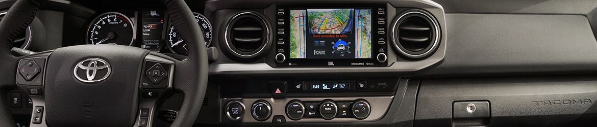All Tacoma trims feature Toyota Safety Sense with adaptive cruise control, a pre-collision system, lane departure warning, and automatic high beams. TRD Sport adds an auto-dimming rearview mirror, while the Limited has a blind spot monitor with rear cross-traffic alert, panoramic view camera system, and rear parking assist. The TRD Pro has an exclusive multi-terrain monitor with camera.