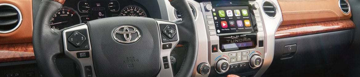 Climb the Tundra trim levels for increasing interior luxury and convenience. The entry-level SR includes complete smartphone integration with Apple CarPlay and Android Auto connectivity. The SR5 adds a bigger 8-inch touch-screen infotainment interface and front bucket seats. The tilt-and-telescoping steering wheel helps you find the perfect driving position.