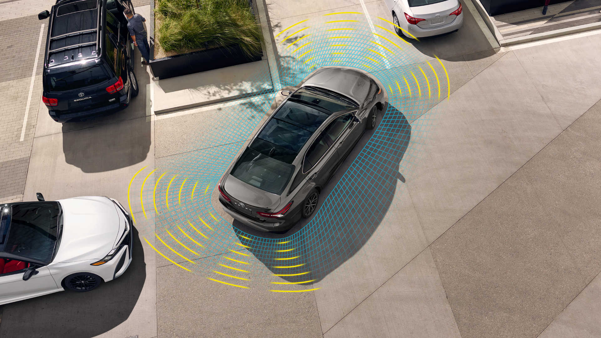 An available Blind Spot Monitor with Rear Cross-Traffic Alert is designed to help look out for your safety. Camry’s available Bird’s Eye View Camera with Perimeter Scan uses front-, side- and rear-mounted cameras to display a panoramic overhead view. When the unexpected occurs, Safety Connect® is ready to help. Drivers can be connected to our 24/7 response center at the touch of a button.