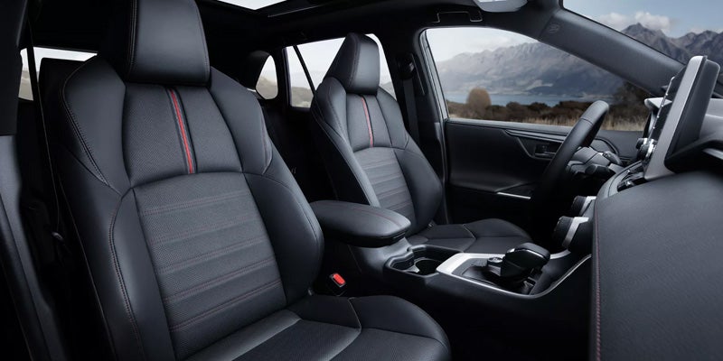 The RAV4 Prime’s front seats are sculpted with spirited driving in mind, offering supportive side bolstering to help hold you in place. In RAV4 Prime XSE, each seat is wrapped in premium SofTex®-trimmed materials for maximum style and comfort. Expand everyone’s view. The available panoramic glass roof gives all passengers a front-row view of the wide-open sky.