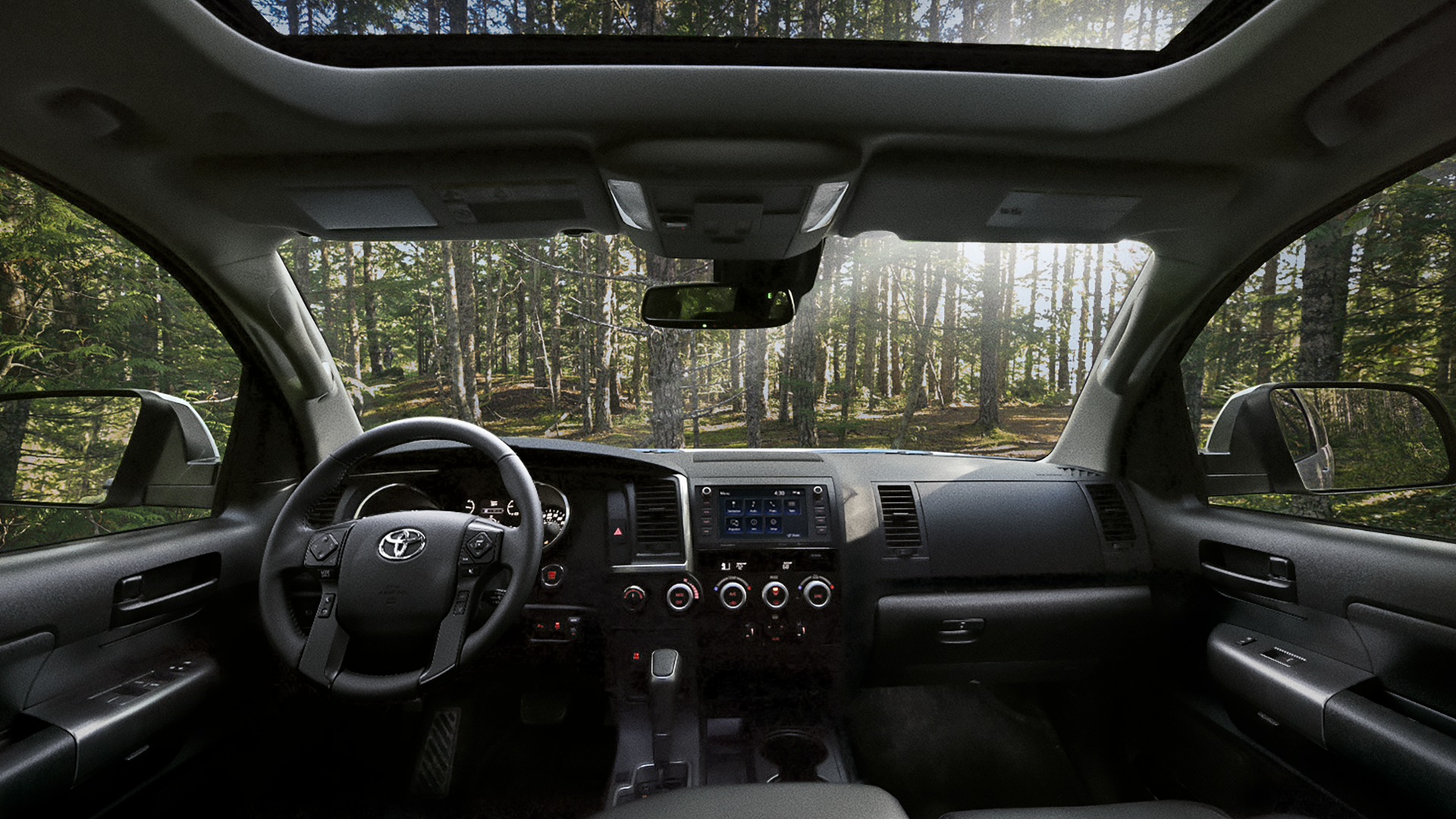 Sequoia offers available second-row captain’s chairs for comfort that’s in a class of its own. Platinum models take it up a notch by giving your passengers the first-class treatment with the addition of heated seats and a multi-function center console. Let more of the outside in with Sequoia’s standard one-touch tilt/slide power moonroof with sliding sunshade. Standard heated and ventilated front seats found inside Sequoia Platinum give the driver and front passenger more comfort and the option to warm up or cool down with a touch of a button.