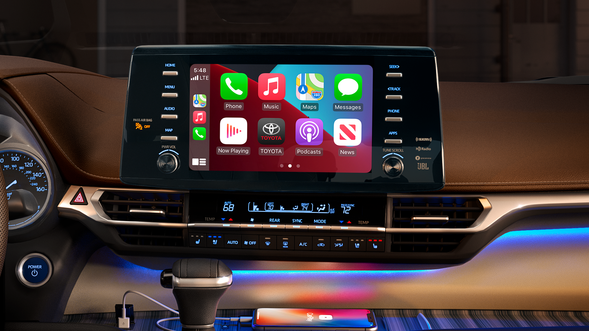 Sienna’s available Dynamic Navigation shows you turn-by-turn directions on the 9-in. multimedia touchscreen display, while its available Premium JBL® Audio system plays your favorite albums and podcasts with enhanced sound quality. You might not have a lot of bandwidth in your day-to-day schedule, but Sienna features available Wi-Fi connectivity so you can stay connected on the go. With Apple CarPlay® and Android Auto™ compatibility standard, you can plug in your compatible iPhone® to get directions, listen to your own playlists, make calls and send messages—all while maintaining focus on your drive.