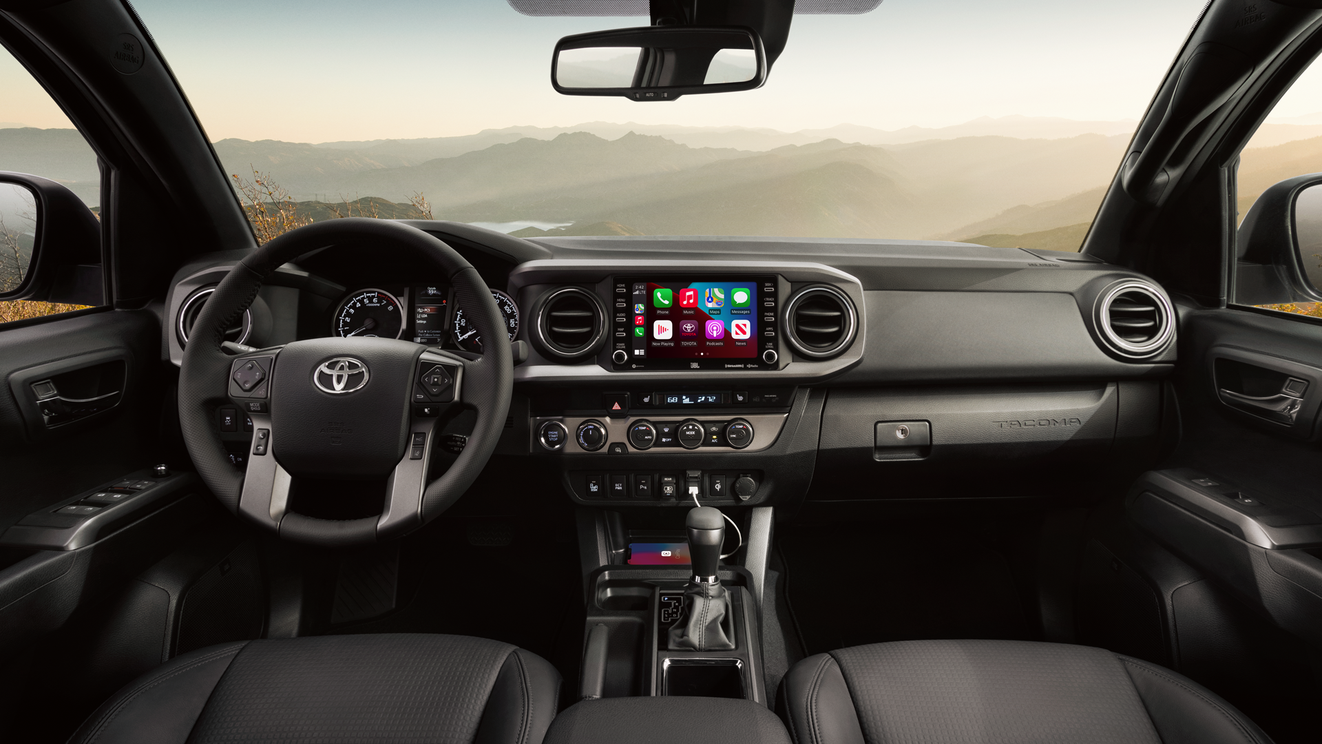 Tacoma is built to handle the demands of a hard-charging outing. Its interior features soft-touch materials to boost your comfort. And Tacoma Limited and TRD Pro add leather-trimmed seating surfaces for the ultimate in tough sophistication. Let the outside in. Tacoma's available power sliding rear window with privacy glass opens with just the touch of a button. Standard on all V6 Tacomas, the dual zone automatic climate control lets the driver and the passenger personalize comfort while out on the trails.