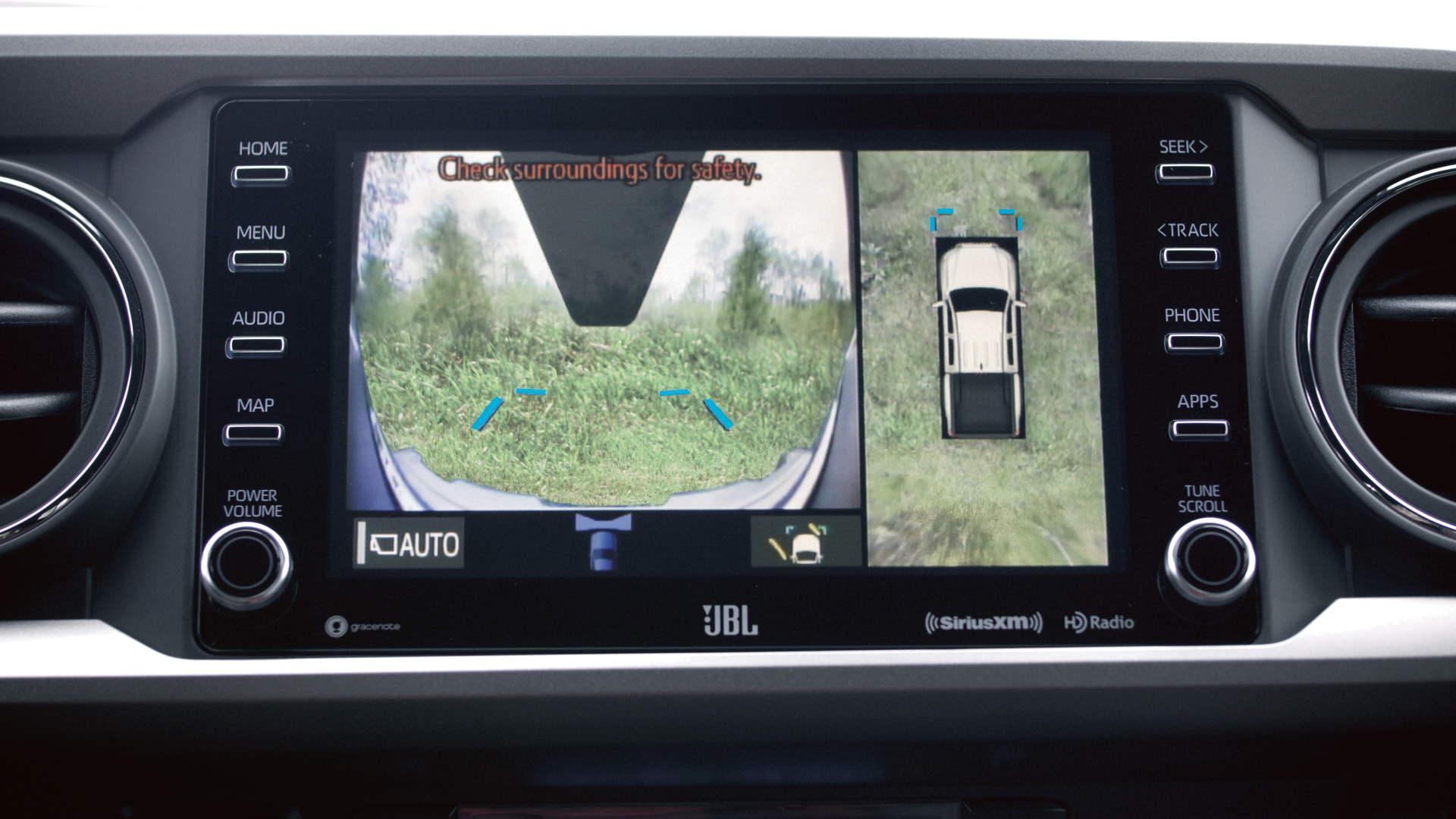 When backing up on a trail—or just backing out of your driveway—you need to see what’s behind you. The standard backup camera mounted in Tacoma’s tailgate handle helps you see an image of what the camera detects behind you on the available 8-in. high-resolution display. When Tacoma’s available Blind Spot Monitor detects a vehicle, it illuminates a warning indicator on the appropriate outside mirror to alert you to the presence of the vehicle, helping you to determine when it's safe to change lanes.