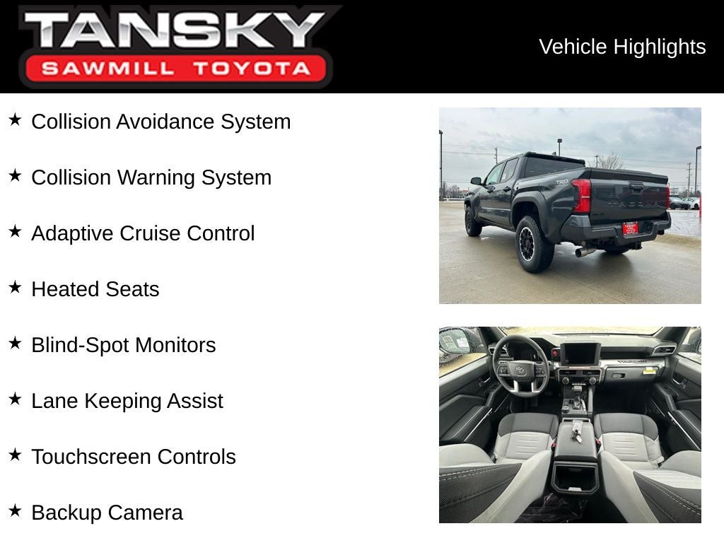 34. Projected EPA-estimated 20 city/26 highway/23 combined mpg rating for 2026 Tacoma SR 4x2 2.4L i-FORCE automatic; projected EPA-estimated 19 city/24 highway/21 combined mpg rating for 2026 Tacoma SR, SR5 4x4 2.4L i-FORCE automatic; projected EPA-estimated 18 city/23 highway/20 combined mpg rating for 2026 Tacoma SR 4x2, TRD Sport 4x2, TRD Off-Road 4x4 2.4L i-FORCE manual; projected EPA-estimated 21 city/26 highway/23 combined mpg rating for 2026 Tacoma SR5 4x2 2.4L i-FORCE automatic; projected EPA-estimated 20 city/24 highway/22 combined mpg rating for 2026 Tacoma TRD PreRunner, TRD Sport 4x2 2.4L i-FORCE automatic; projected EPA-estimated 19 city/23 highway/21 combined mpg rating for 2026 Tacoma TRD Sport, TRD Off-Road 4x4 2.4L i-FORCE automatic; projected EPA-estimated 19 city/23 highway/21 combined mpg rating for 2026 Tacoma TRD Off-Road 4x4 2.4L i-FORCE automatic; and projected EPA-estimated 20 city/23 highway/21 combined mpg rating for 2026 Tacoma Limited 4x4 2.4L i-FORCE automatic as determined by manufacturer. Projected EPA-estimated 22 city/24 highway/23 combined mpg rating for 2026 Tacoma TRD Sport, TRD Off-Road, Trailhunter, TRD Pro 4x4 2.4L i-FORCE MAX automatic as determined by manufacturer; projected EPA-estimated 23 city/24 highway/23 combined mpg rating for 2026 Tacoma Limited 4x4 2.4L i-FORCE MAX automatic as determined by manufacturer. EPA estimates not available at time of posting. Use for comparison purposes only. Your mileage will vary for many reasons, including your vehicle’s condition and how/where you drive. See www.fueleconomy.gov.