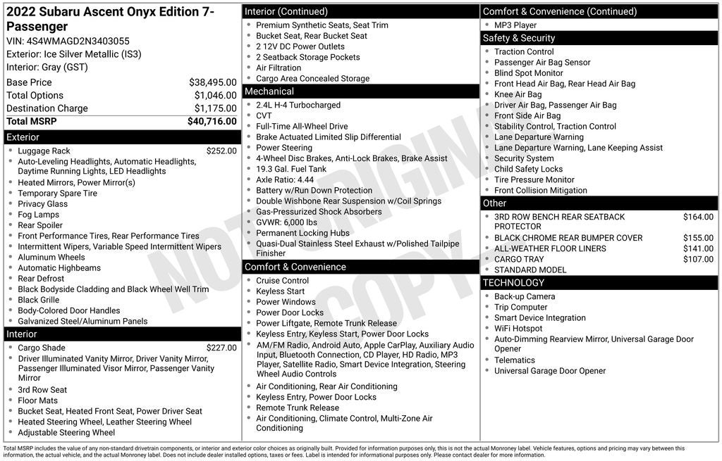 - Vehicle Name: Subaru Ascent