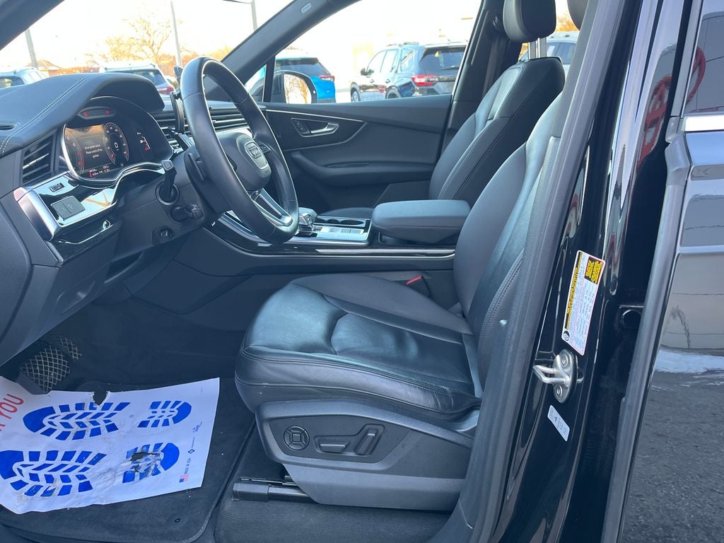 2023 Mythos Black Metallic Audi Q7 45 Premium - This Audi Q7 has many features and is well equipped including, Collision Avoidance System, Leather Seats, Heated Seats, Blind-Spot Monitors, Lane Keeping Assist, Navigation System, Touchscreen Controls, Backup Camera, Keyless Access with Push Button Start, Automatic Headlights, Apple CarPlay, Android Auto, Bluetooth® Hands-Free, Power Liftgate, Panoramic Moonroof.