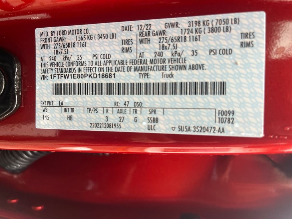 2023 Chili Pepper Red Ford F-150 Lariat - This Ford F-150 has many features and is well equipped including, Collision Warning System, Leather Seats, Heated and Cooled Seats, Blind-Spot Monitors, Lane Keeping Assist, Backup Camera, Keyless Access with Push Button Start, Automatic Headlights, Bluetooth® Hands-Free, Power Liftgate.
