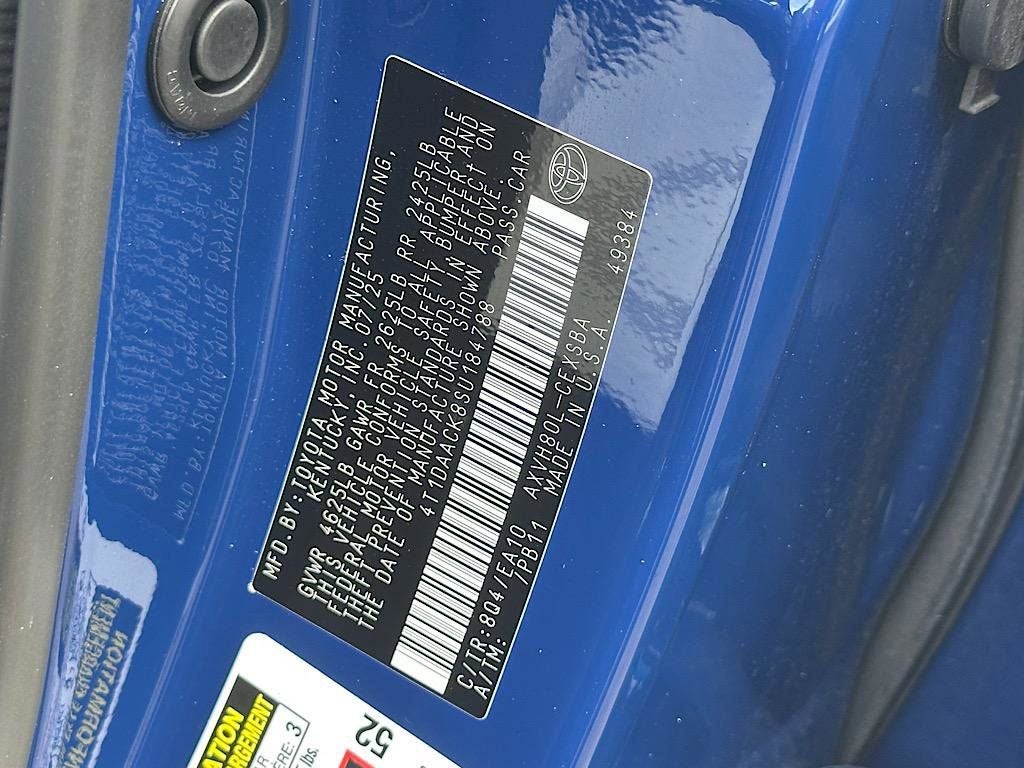 Certified. 2025 Blue Toyota Camry SE